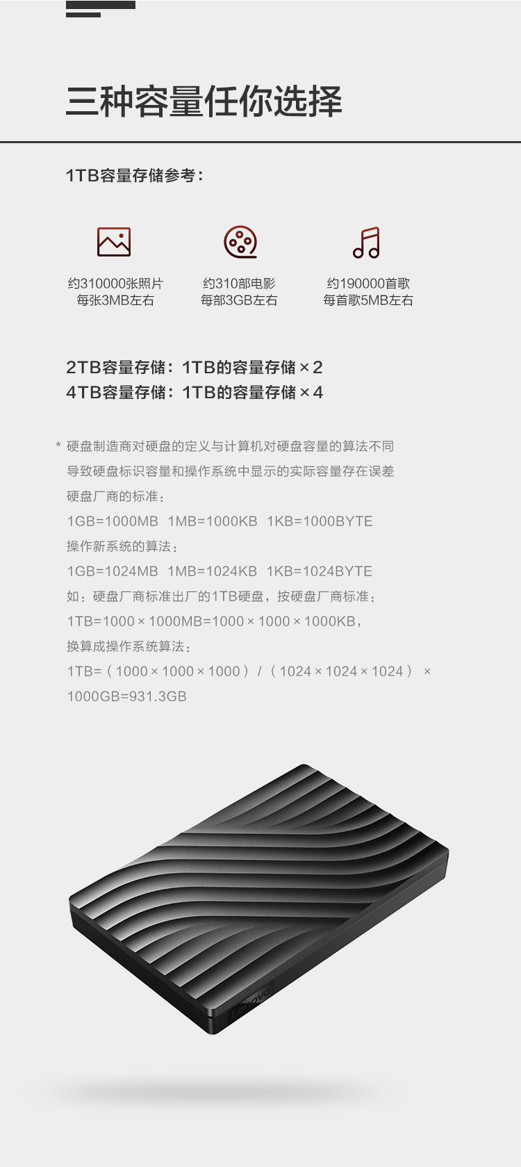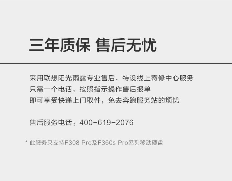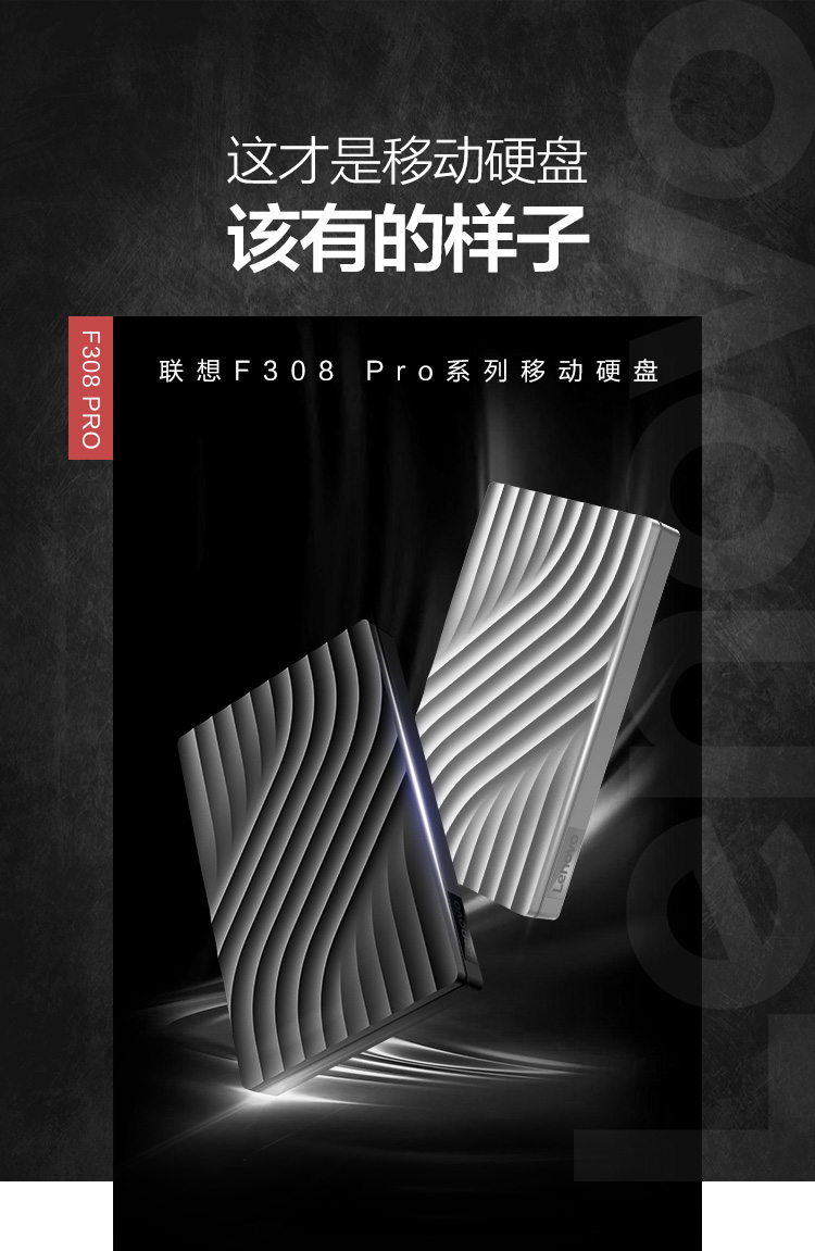 联想(Lenovo) F308 Pro 2TB USB3.0 移动硬盘 2.5英寸 暮辰黑 稳定耐用 轻松备份 高速传输