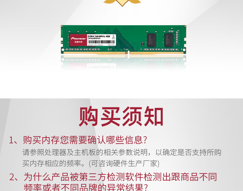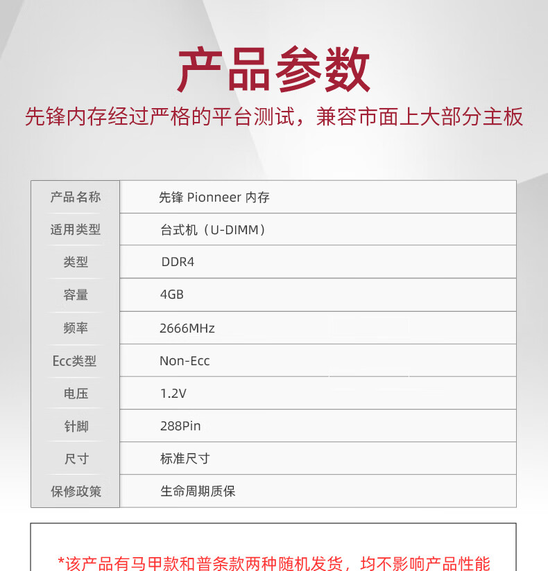 先锋(Pioneer) 4GB DDR4 2666 台式机内存条 冰锋系列
