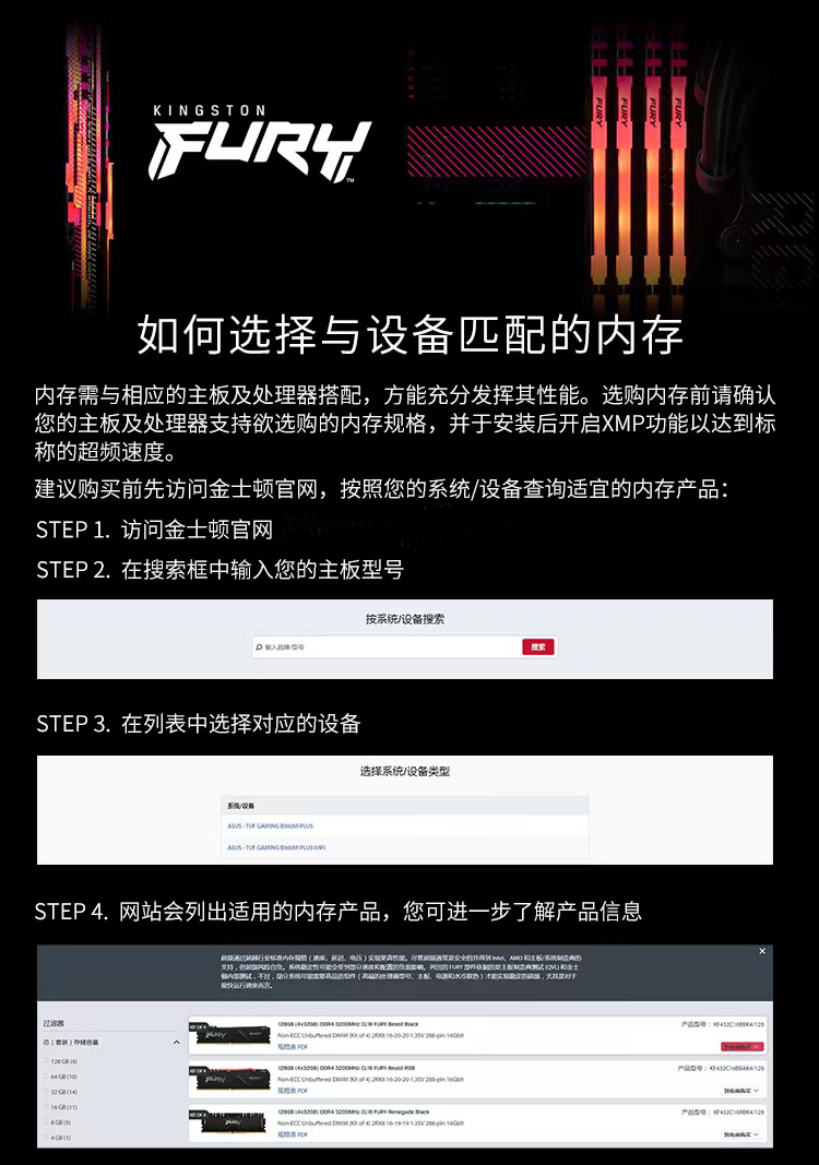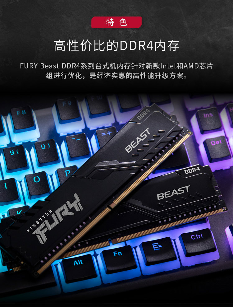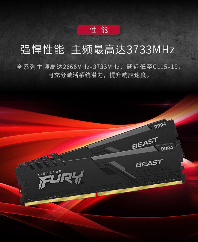 金士顿 (Kingston) FURY 16GB(8G×2)套装 DDR4 3200 台式机内存条