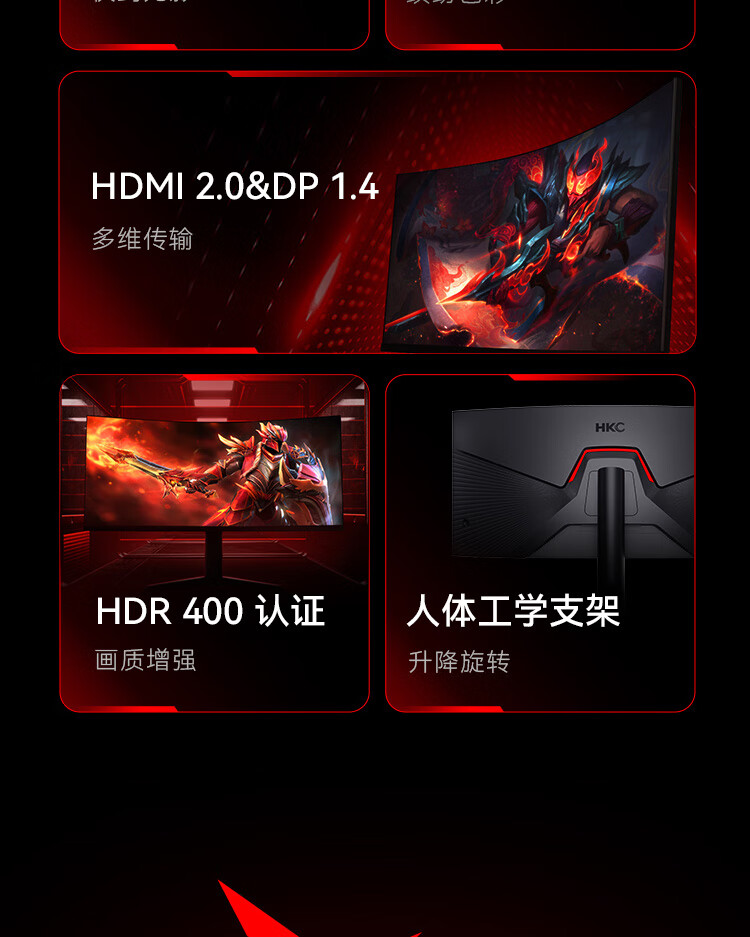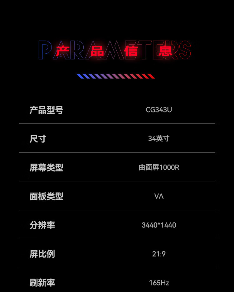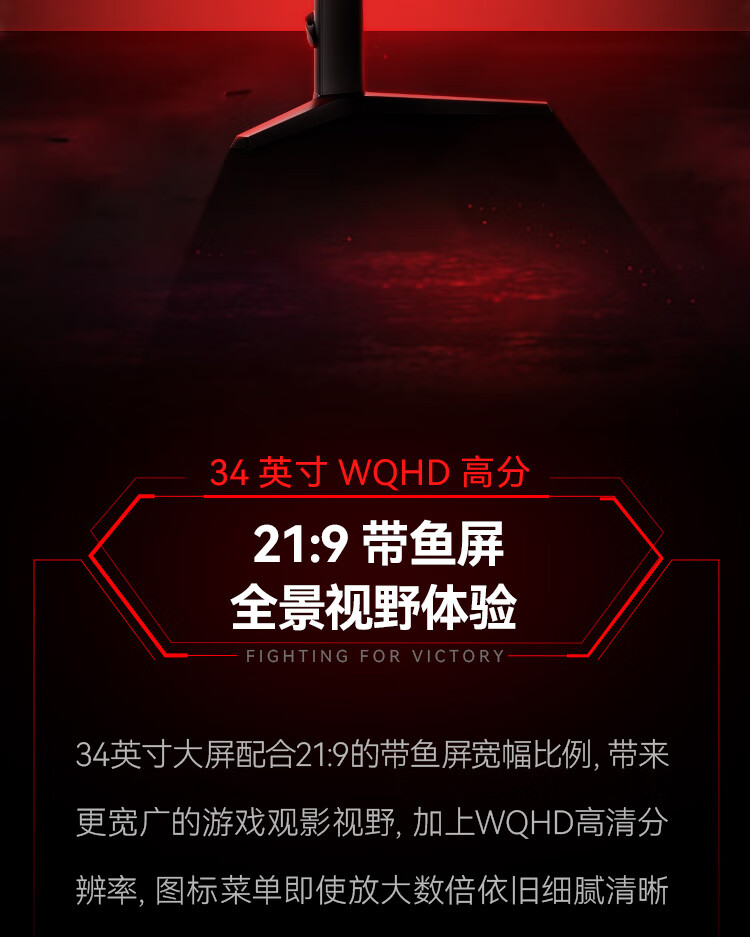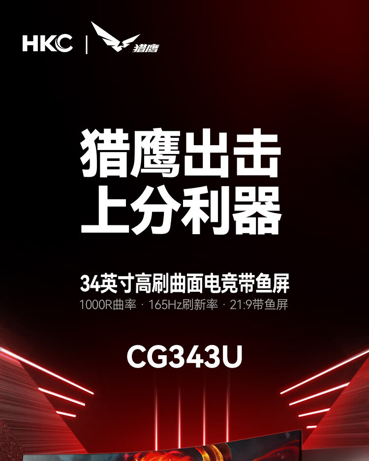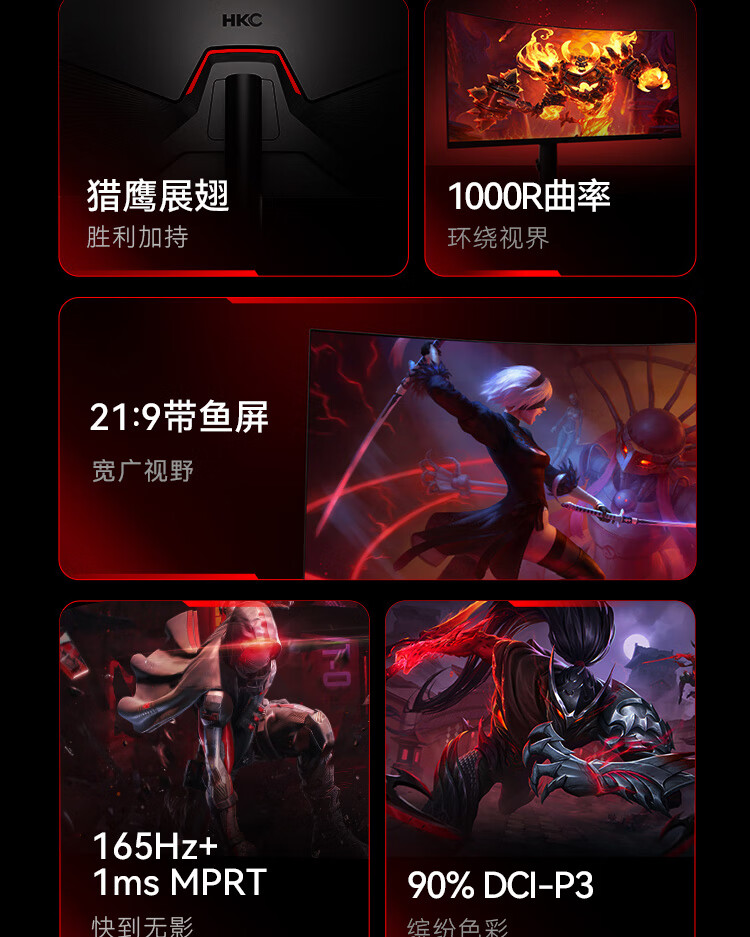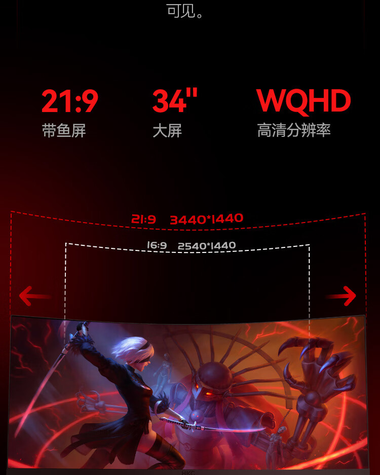 HKC 34英寸21:9带鱼屏 WQHD 165Hz 1ms响应