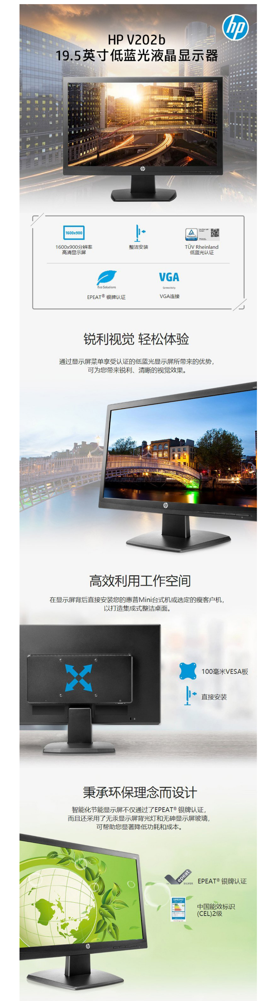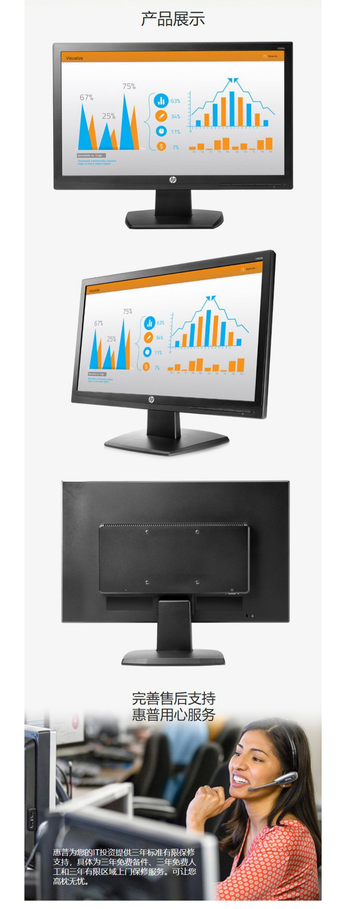 惠普(HP) V202B 19.5英寸LED商用液晶显示器 电脑显示屏 (19.5英寸) (19.5英寸)